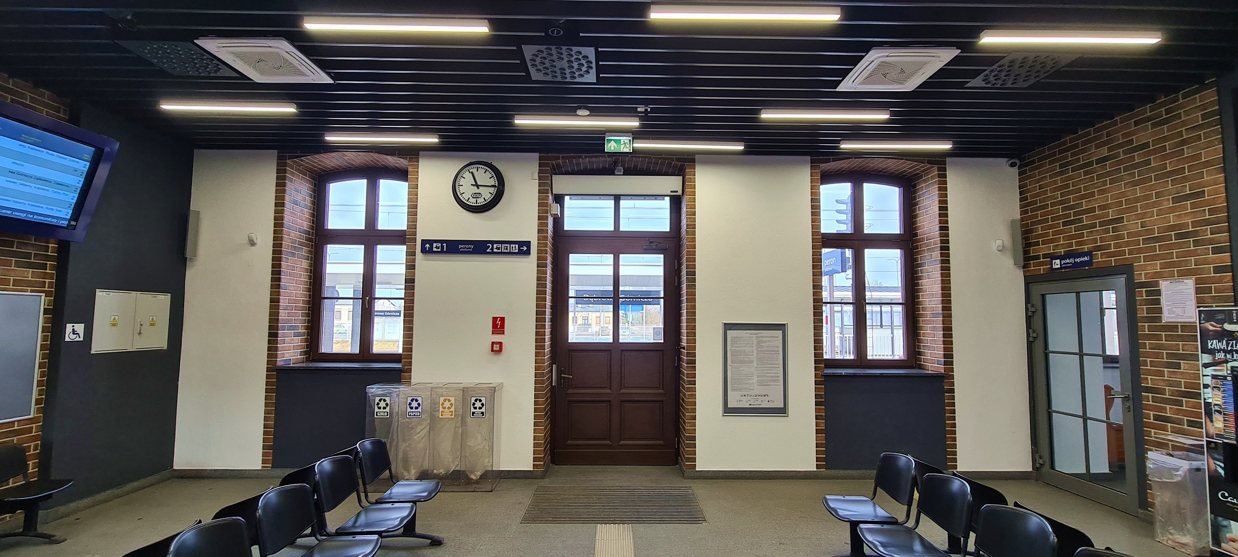 Poczekalnia dworcowa w odrestaurowanym budynku. (Dąbrowa Górnicza, 2026-02-22) |