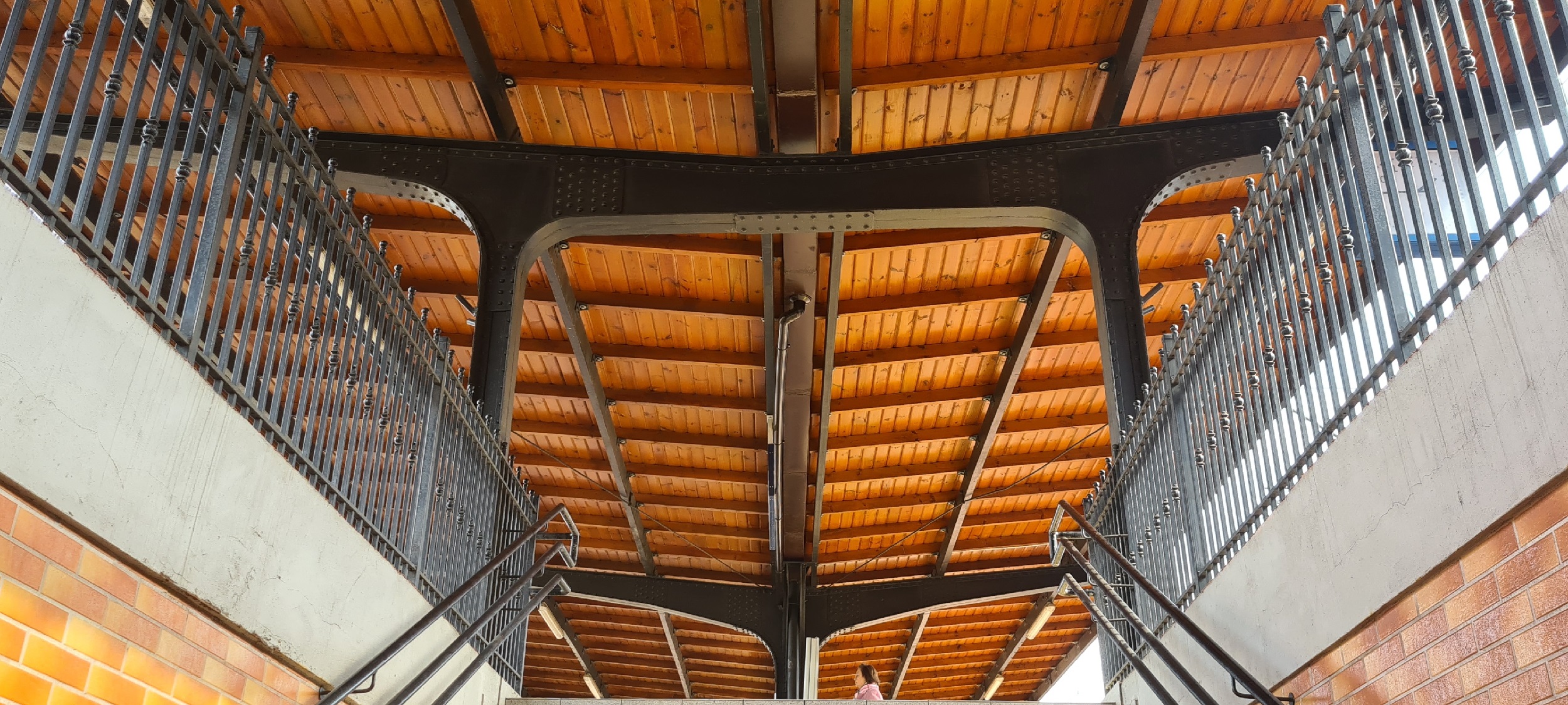 Widok na zabytkową wiatę peronową, z perspektywy wyjścia z tunelu. (Ruda Chebzie, 2026-03-24) |