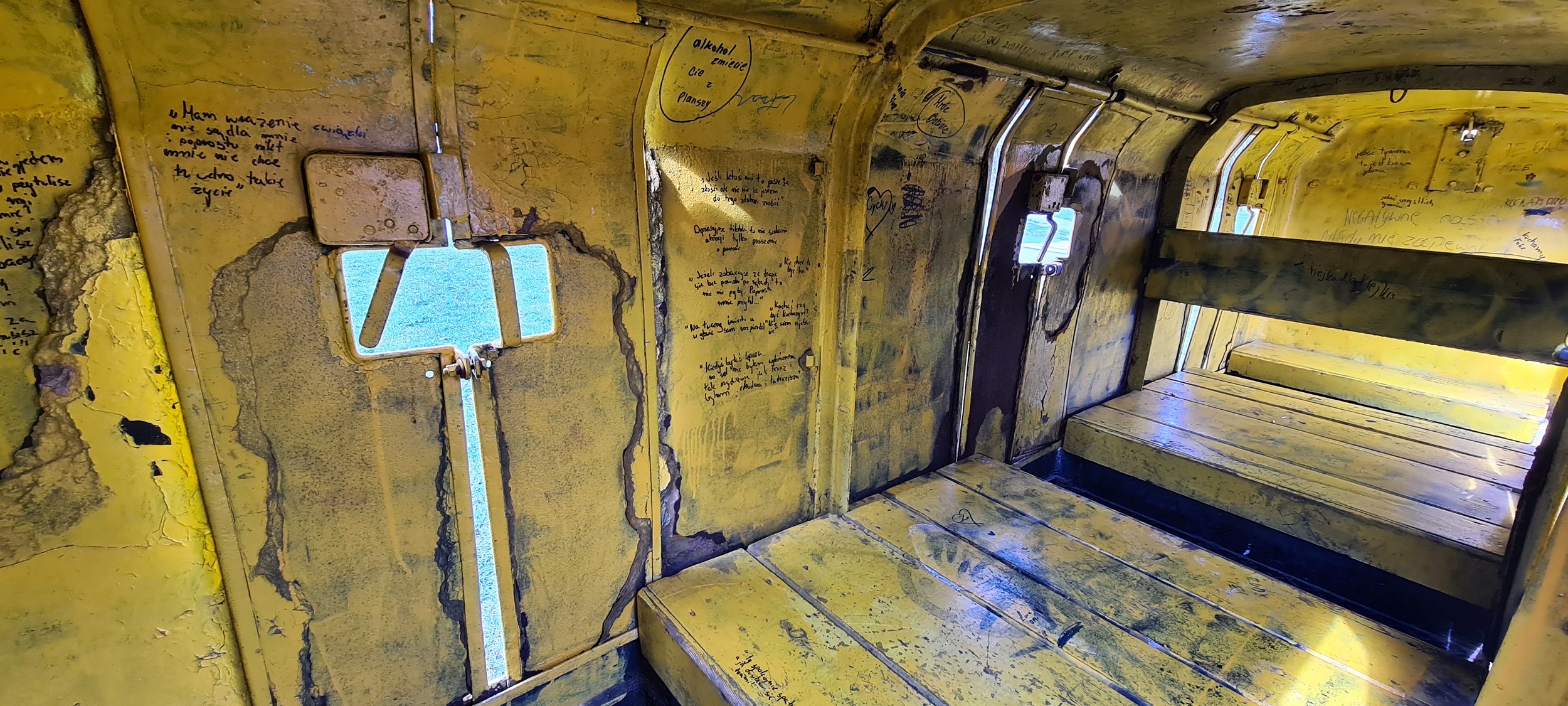 Wóz kopalniany do transportu pracowników, stojący w składzie ustawionym na terenie miasteczka ruchu drogowego, przy ulicy Kolberga. Wagony pochodzą z KWK „Ruda”. (Ruda Śląska, 2026-03-24) |
