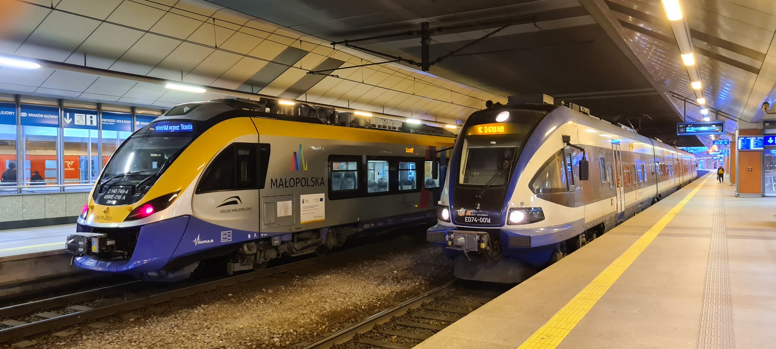 2026, 2026-03-22, Marzec, Marzec2026, Małopolska, Malopolskie, Kraków, KrakówGłówny, PKP, PKPIC, ED74-001, PESA, Edyta, 16WE-10, ED74, Bydgostia, EZT, EMU, jednostka, ZNTKMM, IC3400, Żylica, Newag, Impuls, Jednostka, KMŁ, KolejeMałopolskie, EN79, EN79-003, 45WE, 45WE-016, KML30704/5, 30704/5, 30704, 30705, SKA3, SKA |