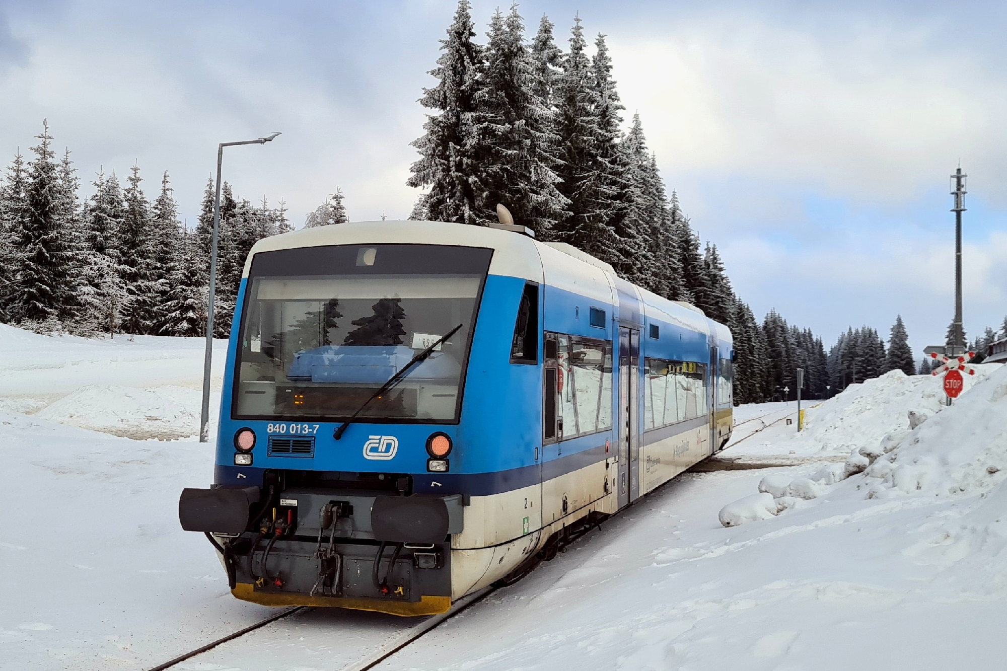 840 003-8 jako pociąg KD2662 z Liberca do Szklarskiej Poręby górnej, wjeżdża na mijankę Szklarska Poręba Jakuszyce. (2026-02-03) |