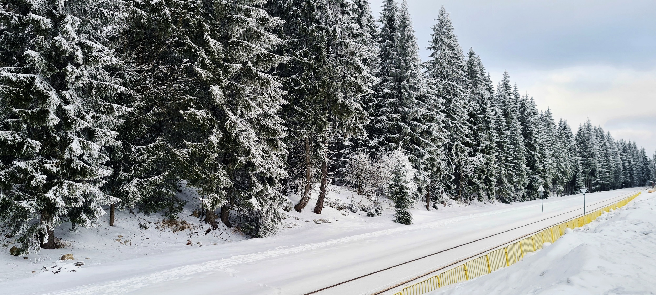 Widok na mijankę, tor dodadkowy przykryty śniegiem. W lewo kierunek Polana Jakuszycka, w prawo – Szklarska Poręba Huta. (Szklarska Poręba Jakuszyce, 2026-02-02) |