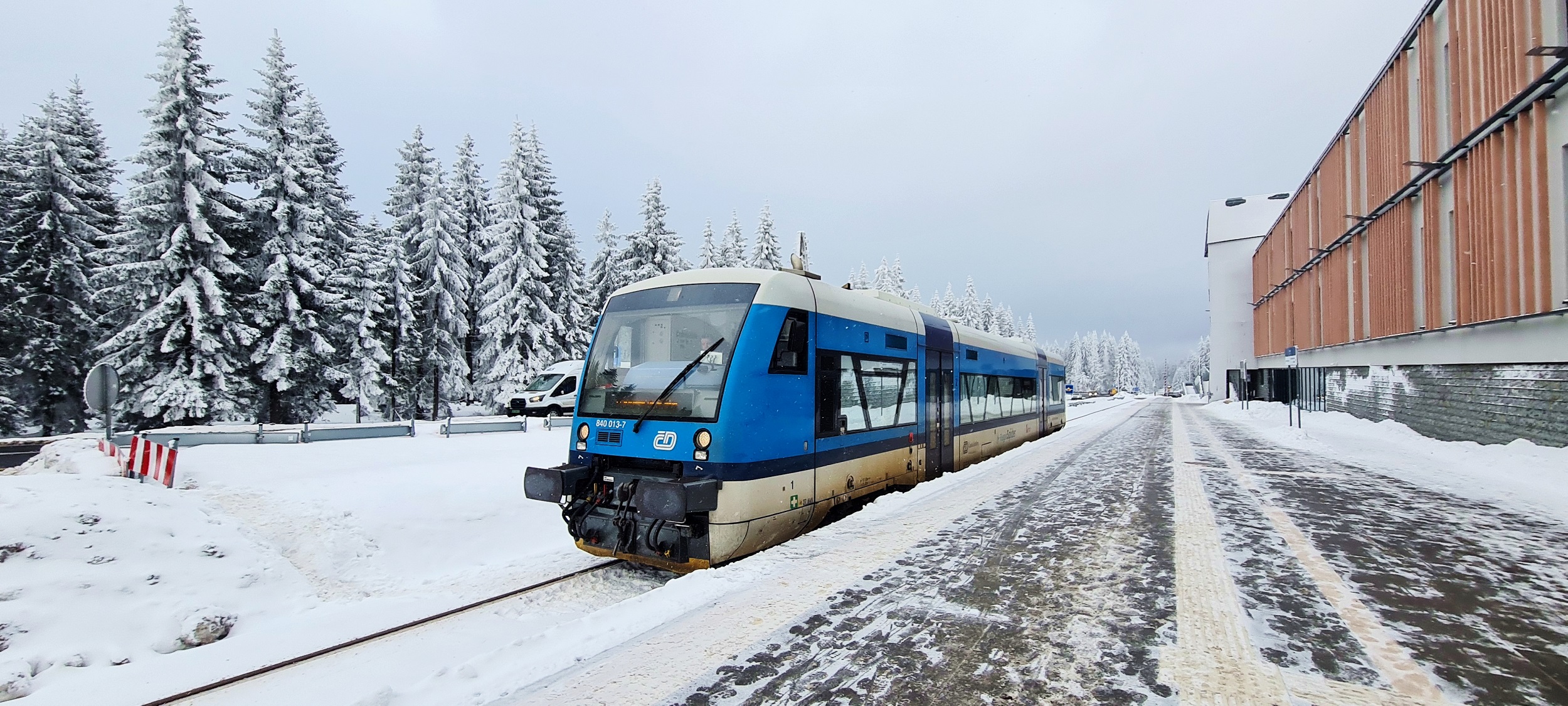 840 013-7 jako pociąg KD2660 z Liberca do Szklarskiej Poręby Górnej. (Polana Jakuszycka, 2026-02-02) |
