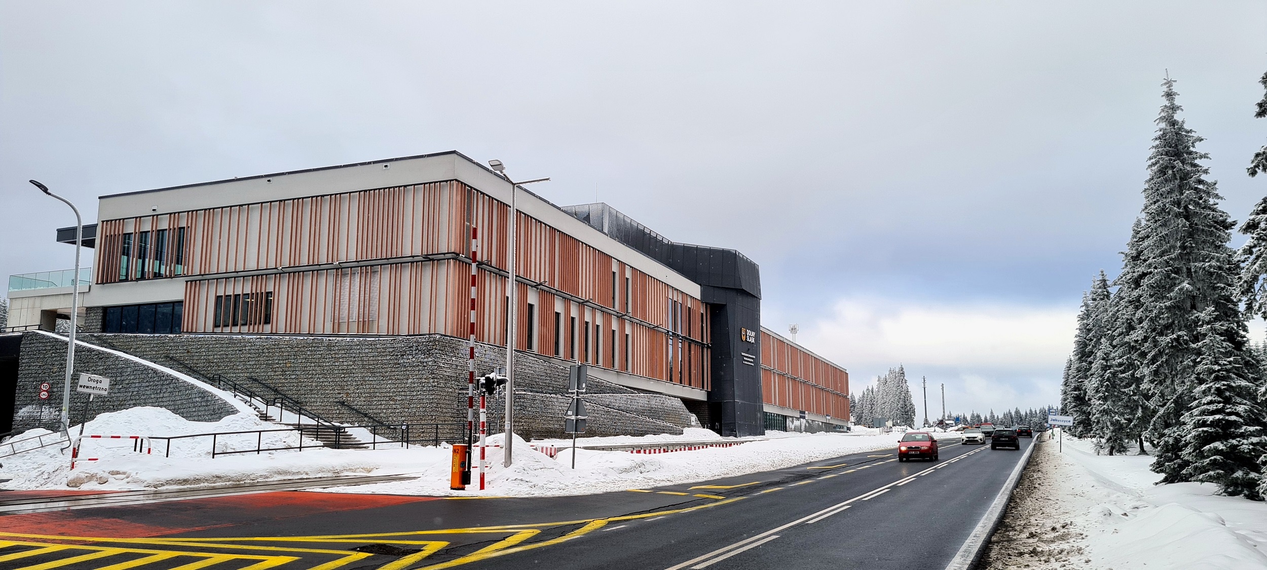 Peron przystanku kolejowego zintegrowany z kompleksem Dolnośląskiego Centrum Sportu. (Polana Jakuszycka, 2026-02-02) |