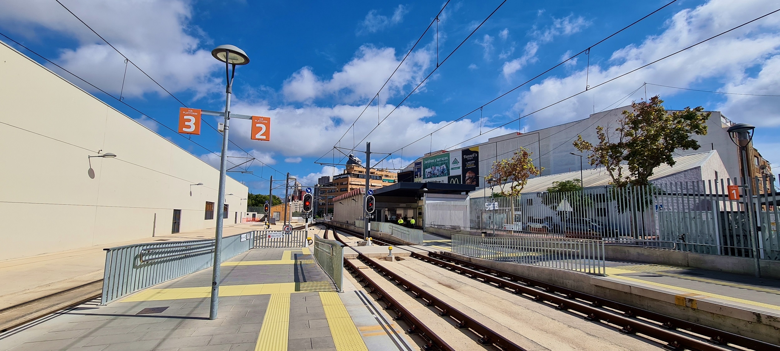 Linia kolei wąskotorowej (Trenet de la Marina ), łączącej Alicante z miasteczkiem Dénia, została przekuta na rozstaw 1435 mm, w części zelektryfikowana i w śródmieściu Alicante wprowadzona pod ziemię. (Benidorm, 2025-09-27) |