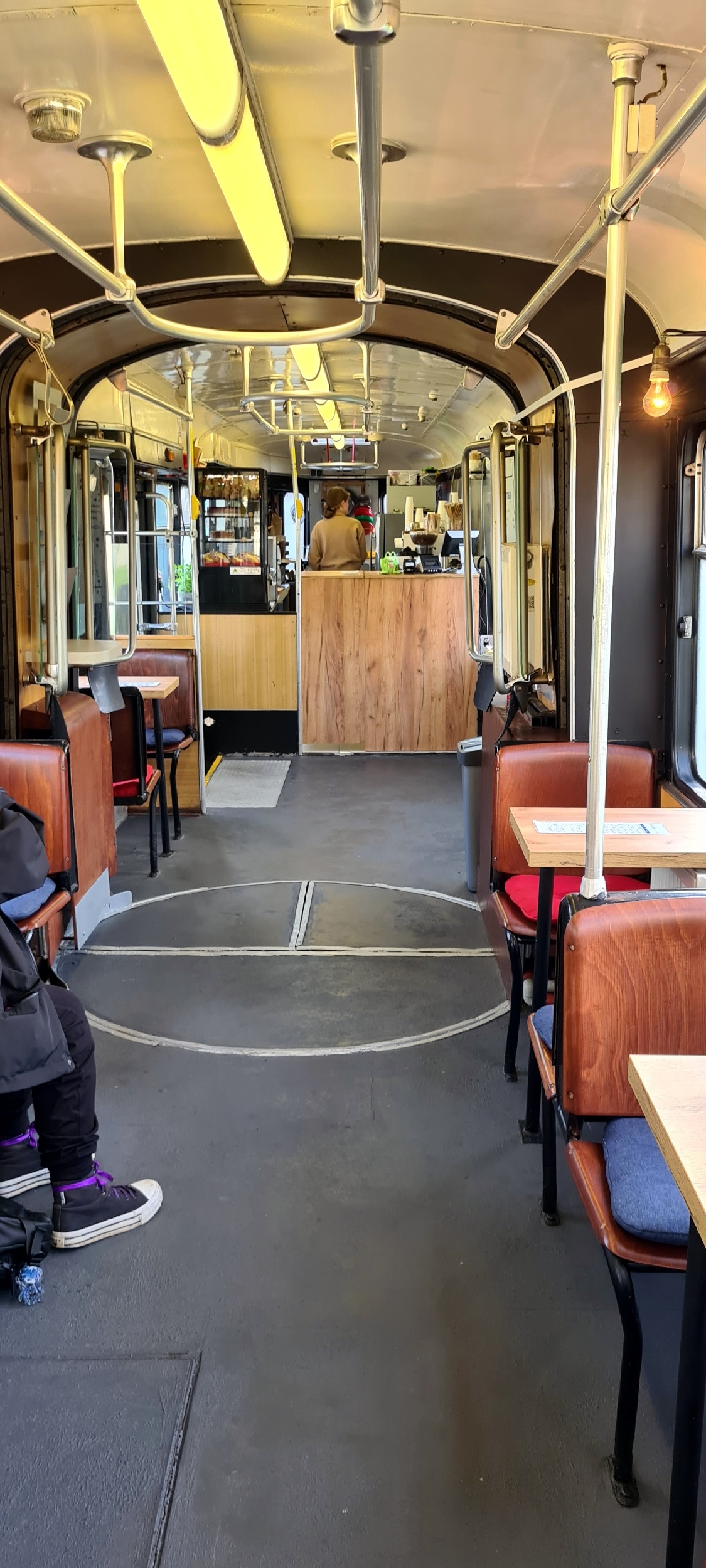 Jeżdżący niegdyś w Norymberdze, później w barwach MPK Kraków, obecnie ustawiony przy ulicy Życzkowskiego GT6 #173. Od kilkunastu lat tramwaj działa jako popularny PANTOGRAF cafe, czyli bar z kawą, ciastem i kanapkami. (Kraków, 2025-09-25) |