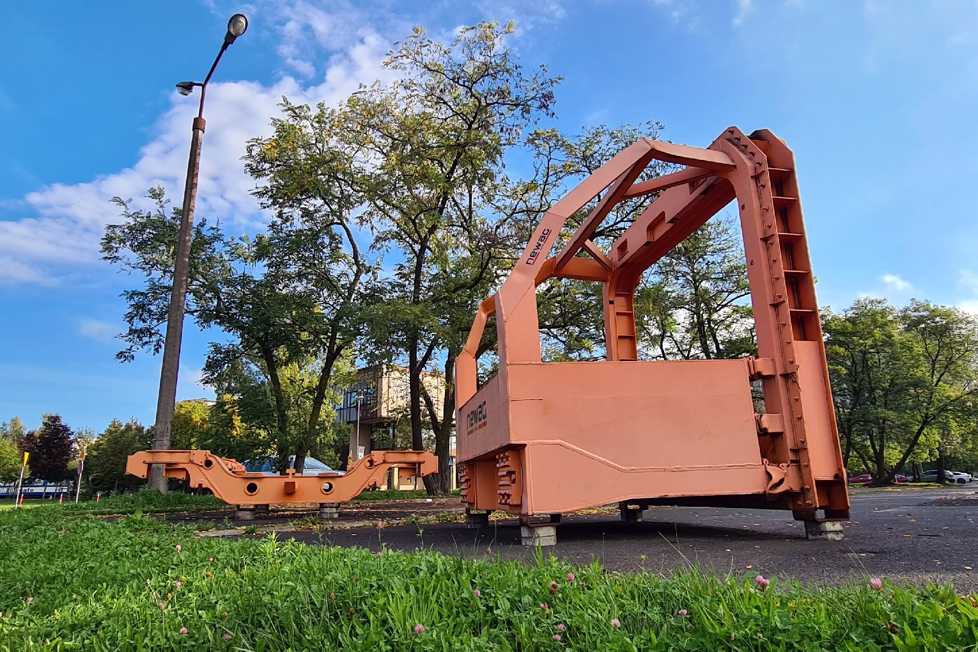 Rama wózka i zdeformowana po próbie zderzeniowej kabina „Impulsa”, ustawione przy skrzyżowaniu ulicy Życzkowskiego z aleją Jana Pawła II. (Kraków, 2025-09-25) |