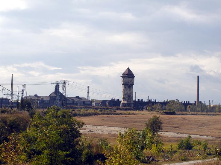 Zrujnowana wieża wodna na terenie Huty Szopienice. (Katowice 2004-09-23) |