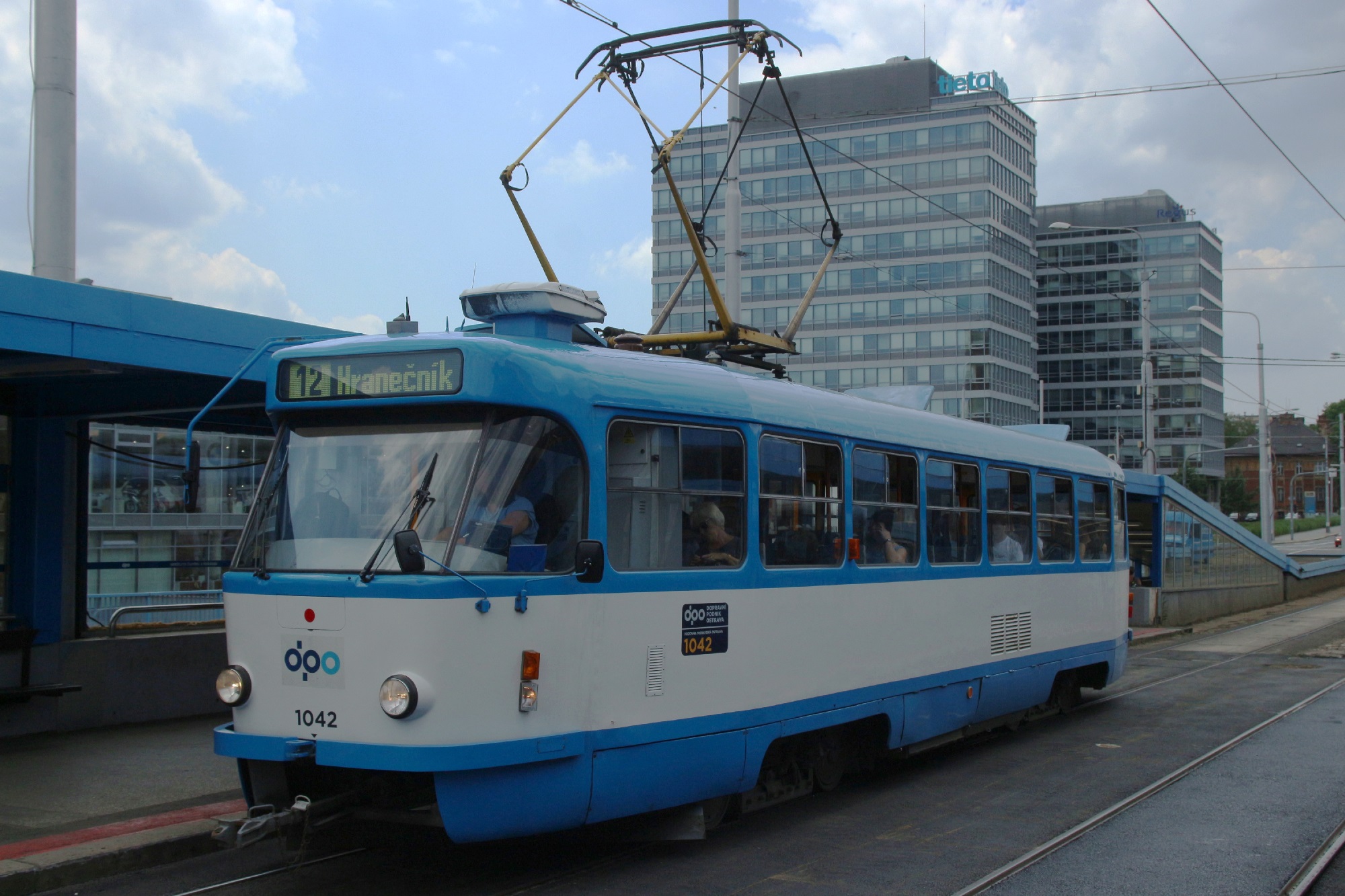 Tatra T3R.P #1042 na linii 12, przystanek przy Náměstà Republiky. (Ostrava, 2018-06-20) |