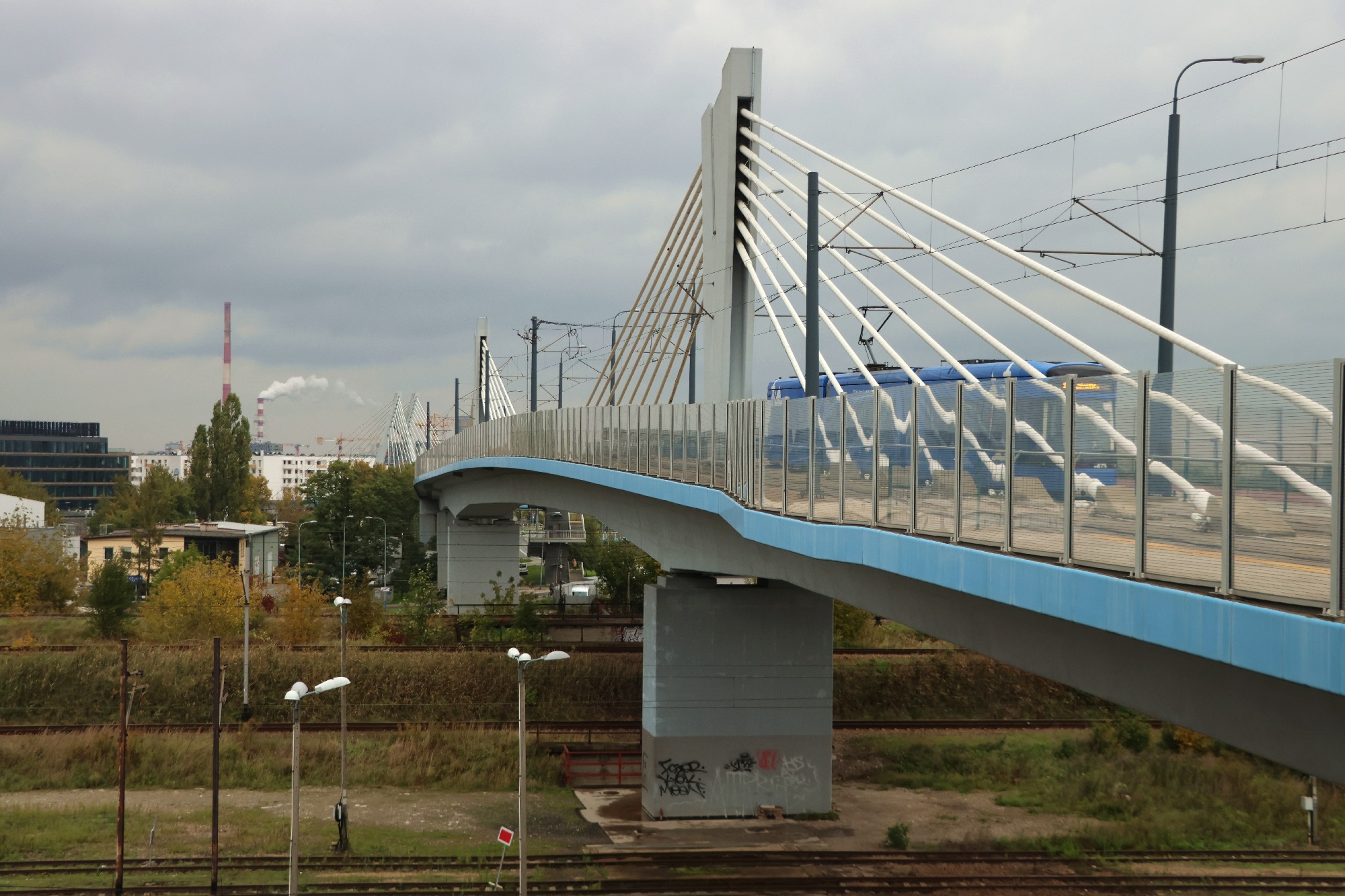 | Komentarz: | Estakada tramwajowa ujęta z przejścia pomiędzy kolejowym peronem 3 a przystankiem tramwajowym Dworzec Płaszów Estakada. (Kraków Płaszów, 2025-10-12) |