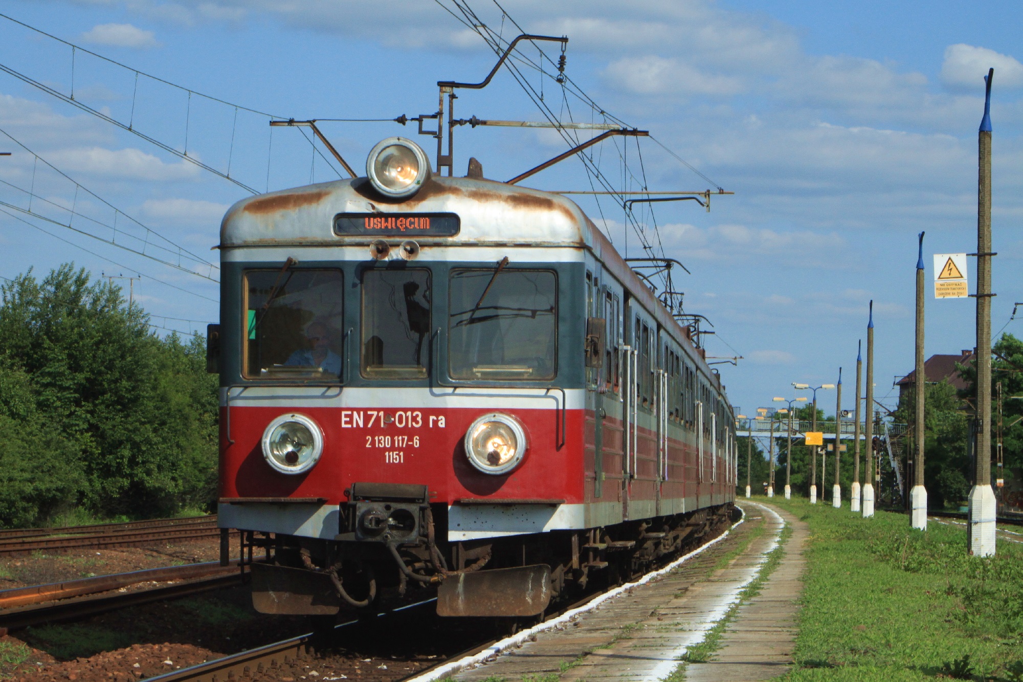 EN71-013 jako pociąg regio 30414 do Oświęcimia. (Kraków Mydlniki, 2013-07-08) |