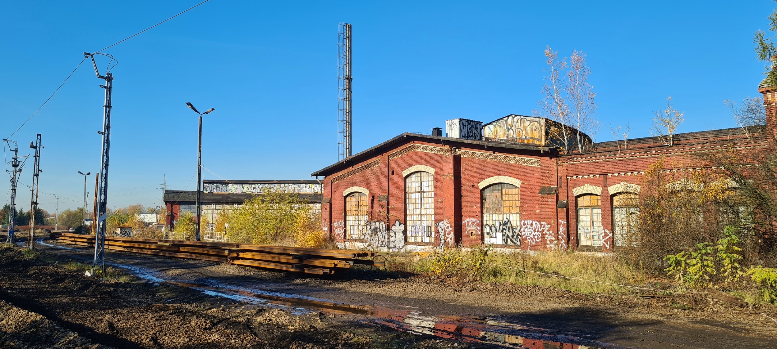 Stara parowozownia, widok zachodniej hali wachlarzowej. (Katowice, 2025-11-06) |