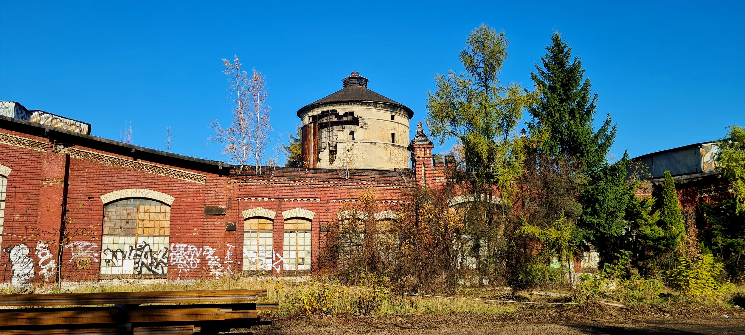 Stara parowozownia, łącznik pomiędzy obiema halami wachlarzowymi. (Katowice, 2025-11-06) |