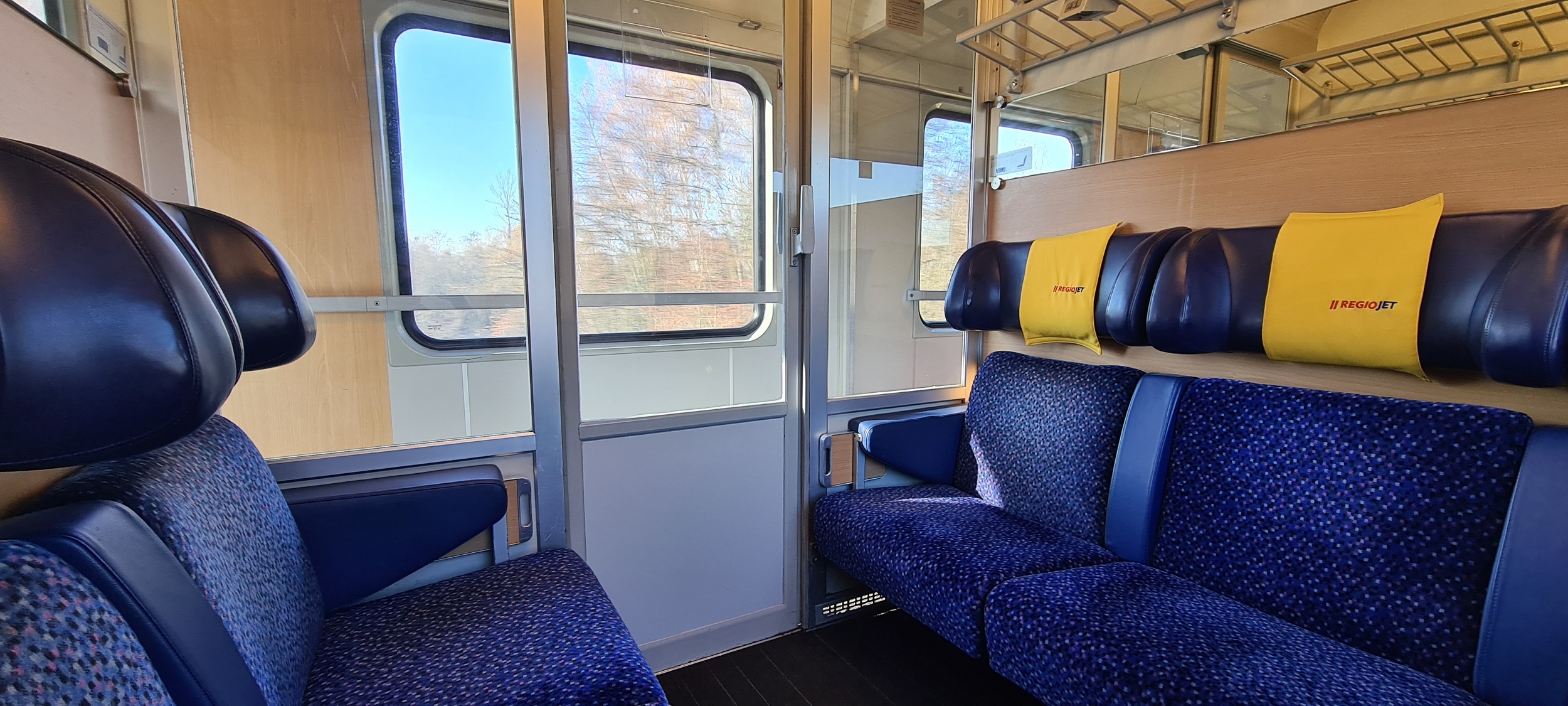 Wagon 61 81 30-90 039-1 AB039 w składzie pociągu RJ3104/5 „REGIOJET”, z Krakowa Głównego do Warszawy Wschodniej, przez Zawiercie.