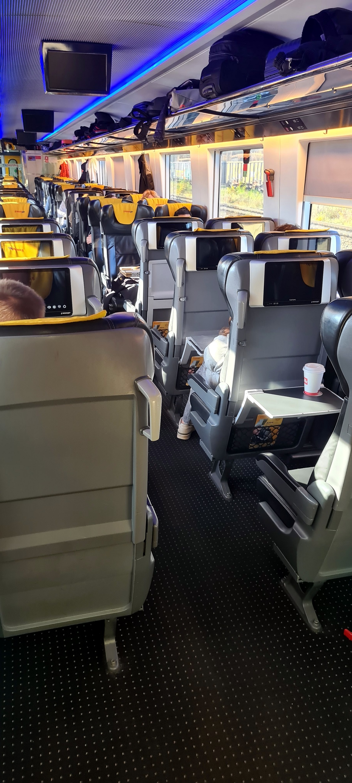 Wagon 2 klasy „Standard”, w składzie pociągu RJ3104/5 „REGIOJET”, z Krakowa Głównego do Warszawy Wschodniej, przez Zawiercie. (2025-11-06) |