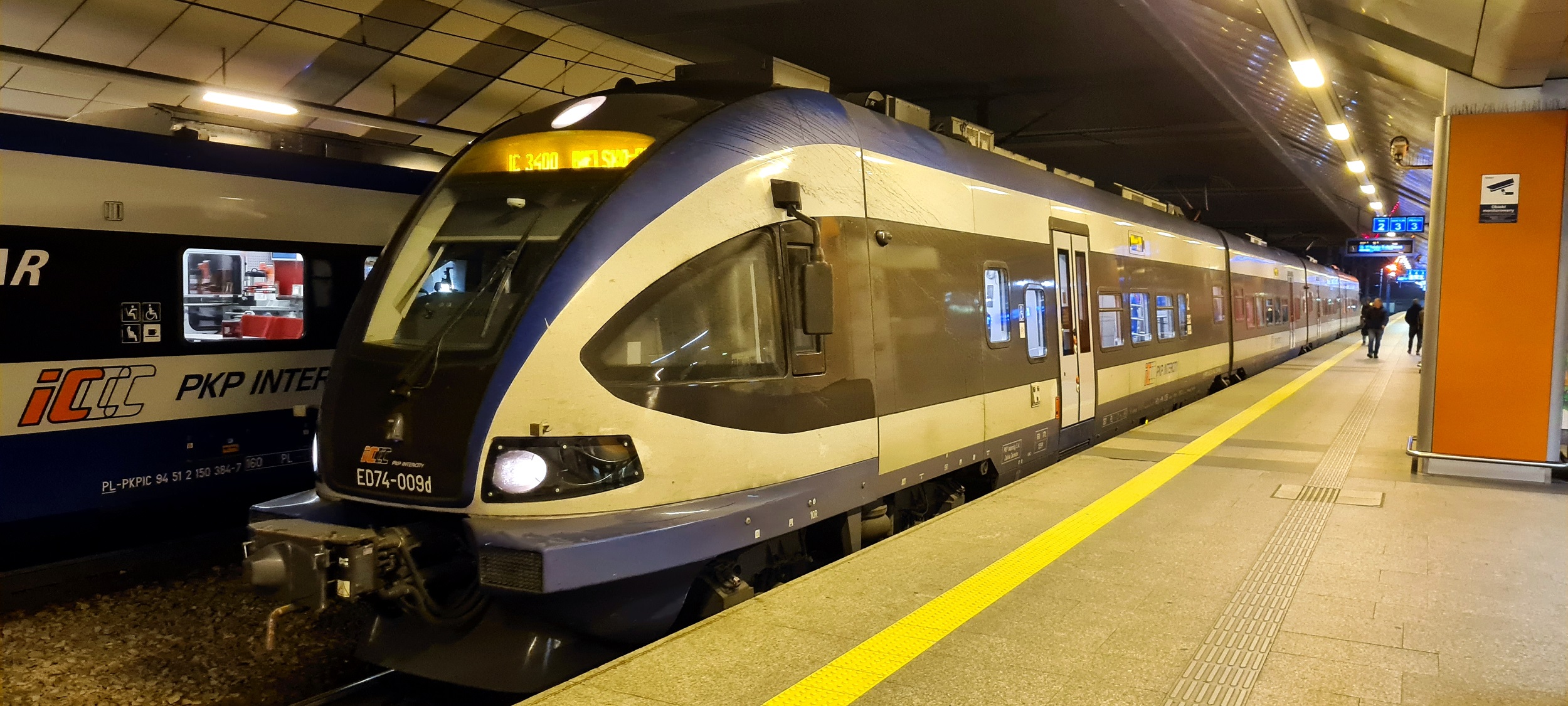 ED74-009 jako pociąg IC3400 „Żylica” do stacji Bielsko-Biała Główna. (Kraków Główny, 2025-11-05) |