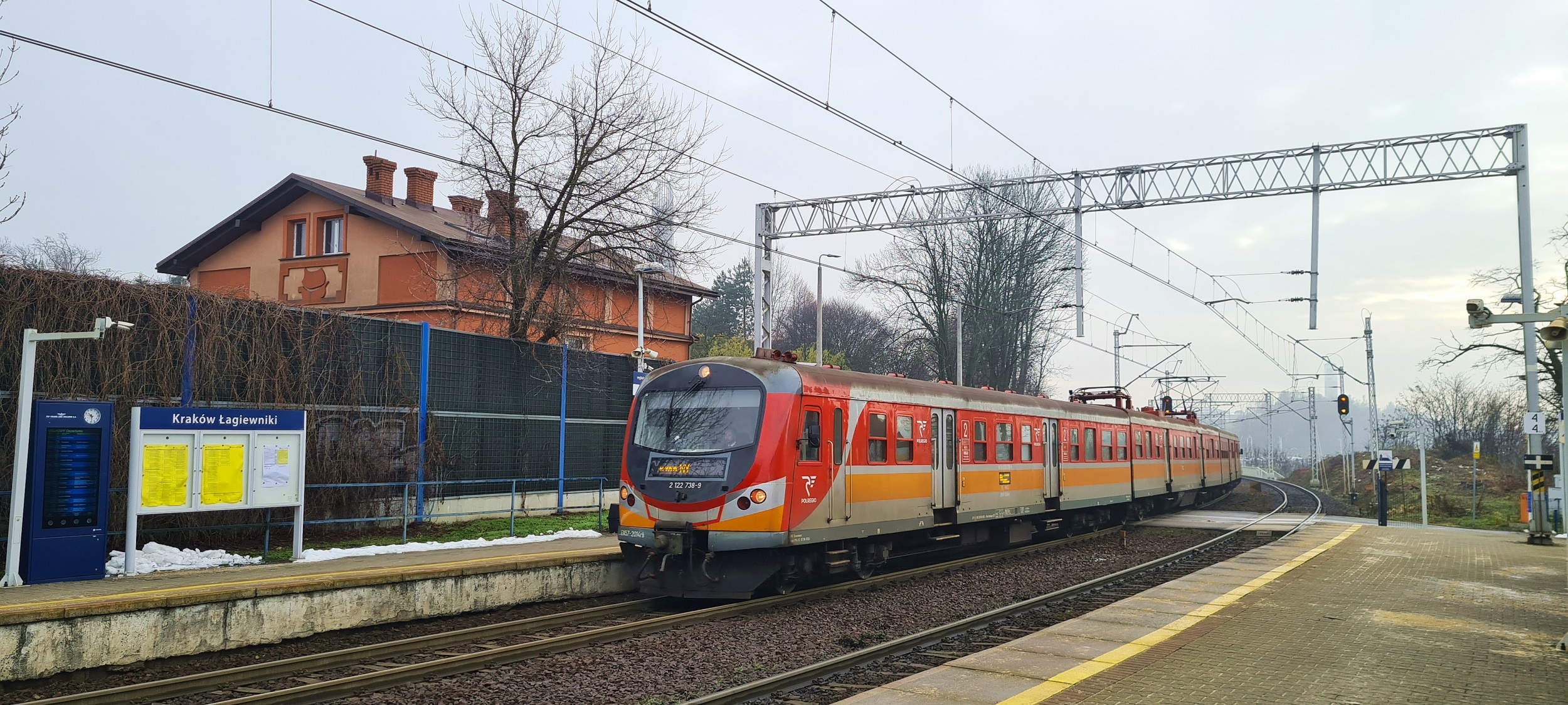 EN57-2014 jako pociąg R30536 „Janosik”, relacji Zakopane – Kraków Główny. (Kraków Łagiewniki, 2025-12-04) |