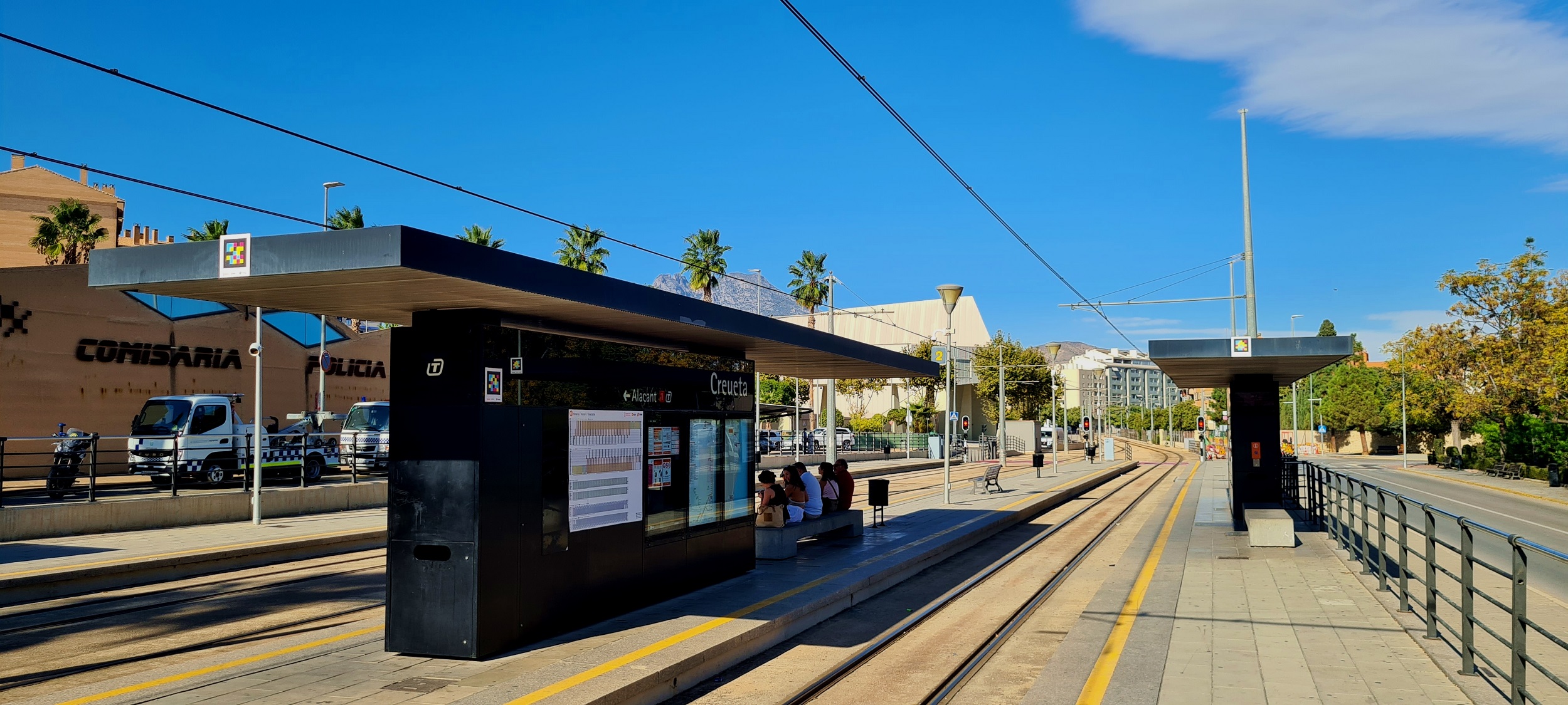 Linia kolei wąskotorowej (Trenet de la Marina ), łączącej Alicante z miasteczkiem Dénia, została przekuta na rozstaw 1435 mm, w części zelektryfikowana i w śródmieściu Alicante wprowadzona pod ziemię. (Creueta, Villajoyosa, 2025-10-06) |