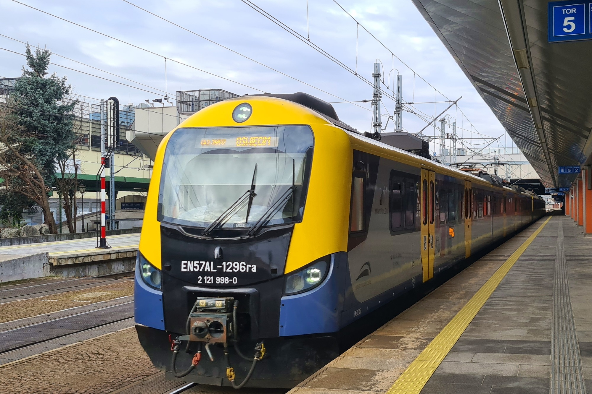 EN57AL-1296 i EN57AL-1574 rusza ją jako pociąg KML39517 SKA2 do Oświęcimia. (Kraków Główny, 2025-12-08) |