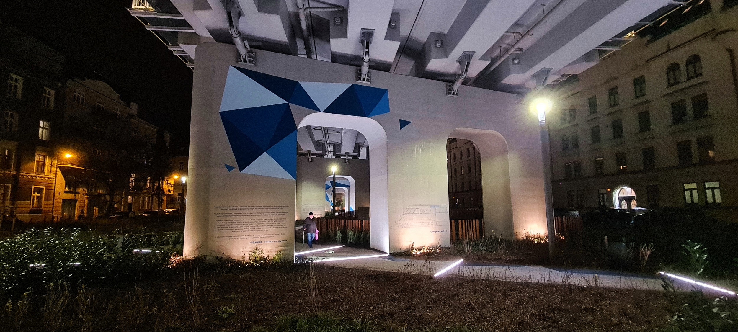 Park Kolejowy powstały pod estakadą średnicową, pomiędzy ulicami Grzegórzecką i Kopernika. (Kraków, 2025-12-09) |