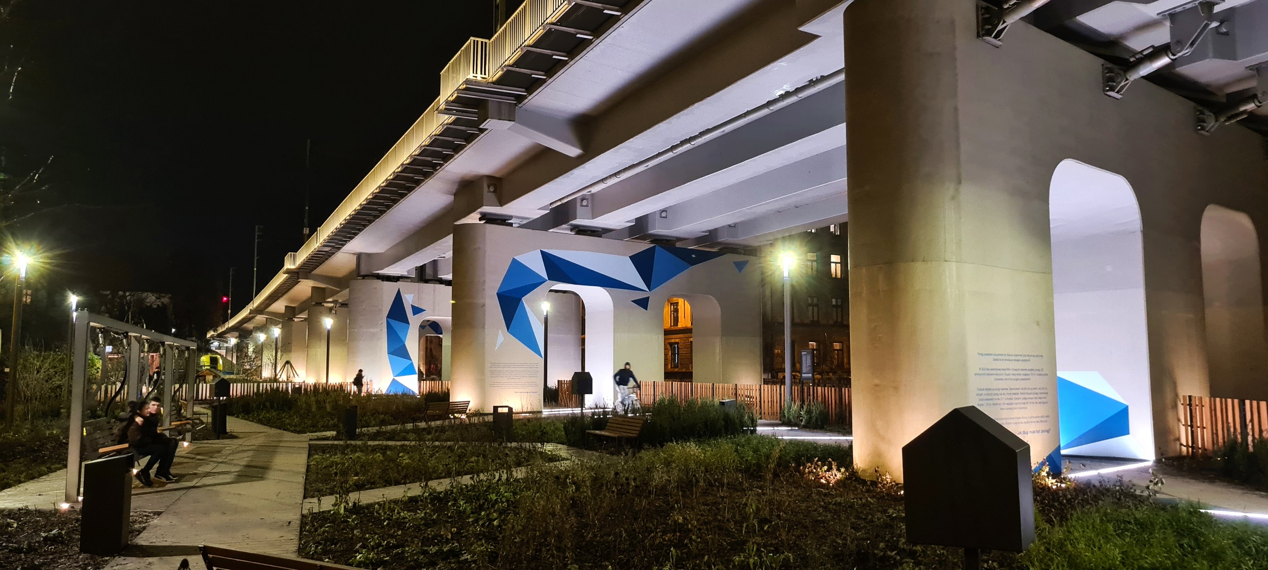 Park Kolejowy powstały pod estakadą średnicową, pomiędzy ulicami Grzegórzecką i Kopernika. (Kraków, 2025-12-09) |