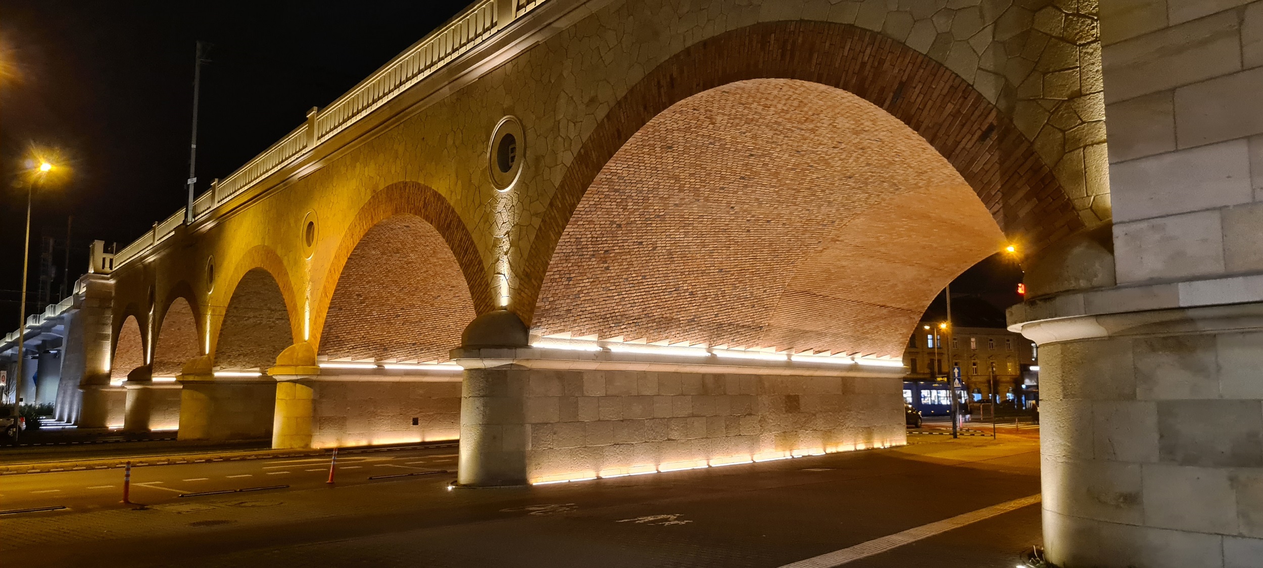 Zachodnia strona wiaduktu, ujęta od południowego przyczółku. (Kraków, 2025-12-09) |