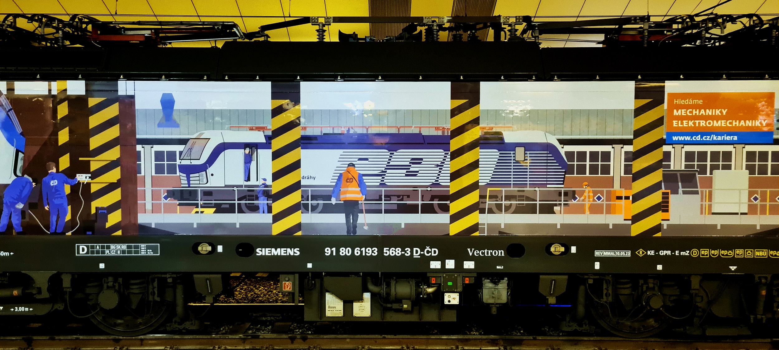 Okleina na burcie 6193 568, poprzez którą ČD chcą uzupełnić niedobory kadrowe wśród mechaników i elektromechaników. (Kraków Główny, 2025-12-14) |