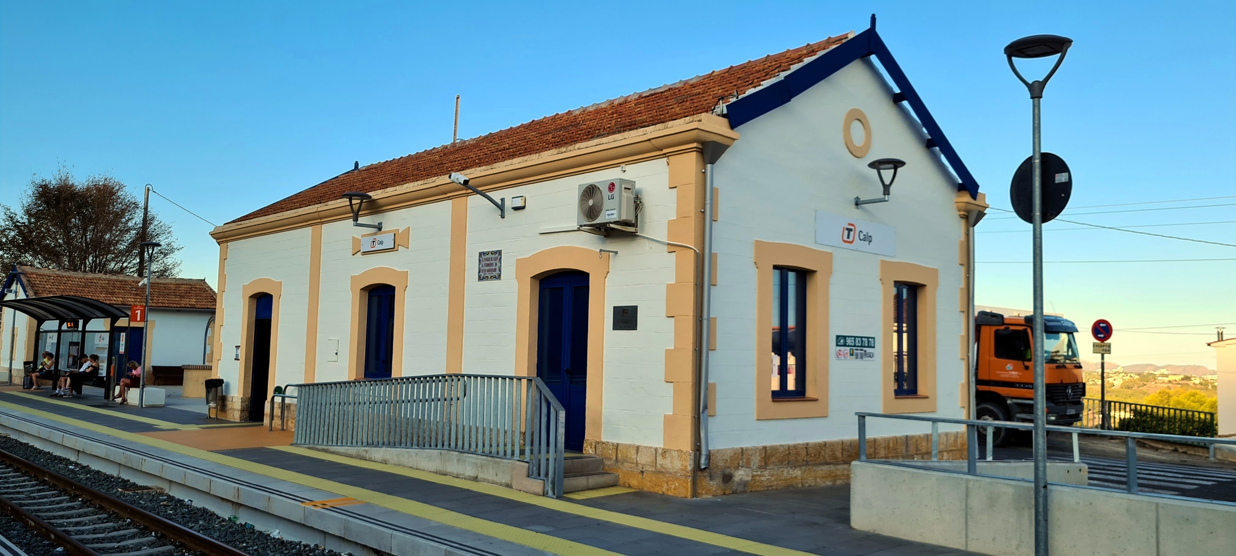 Linia kolei wąskotorowej (Trenet de la Marina ), łączącej Alicante z miasteczkiem Dénia, została przekuta na rozstaw 1435 mm, w części zelektryfikowana i w śródmieściu Alicante wprowadzona pod ziemię. (Calp, 2025-10-01) |