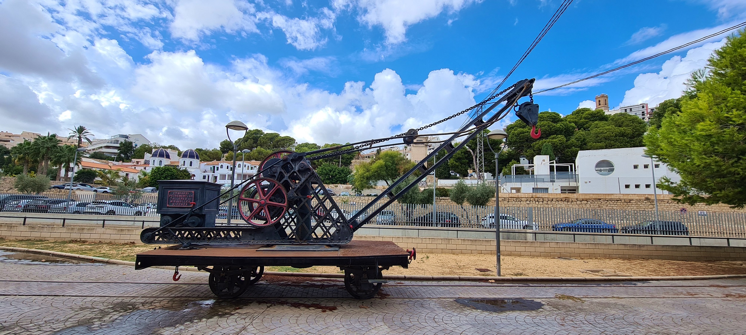 Żuraw zbudowany przez Chavarri Talleres Mirravalles. Firma powstała na terenie dzisiejszego Kraju Basków w 1878 roku. Zajmowała się produkcją infrastruktury kolejowej i przeładunkowej. Po przekształceniach własnościowych zajęła się także produkcją taboru kolejowego (od 1912 roku). Maszyna stoi wyeksponowana na terenie zachowanej stacji kolejowej Altea.