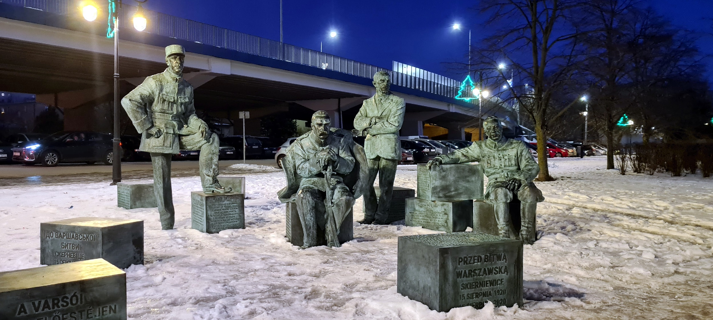 Pomnik „Przed Bitwą Warszawską 1920”, ustawiony przed budynkiem dworca. (Skierniewice, 2026-01-18) |