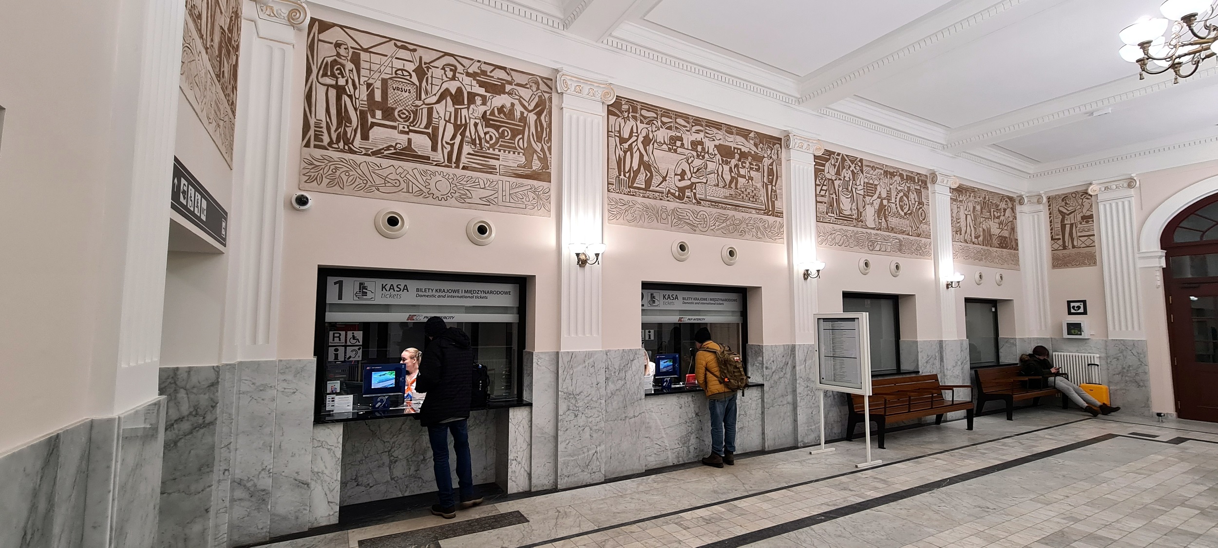 Hol kasowy z poczekalnią, zajmujący zachodnie skrzydło dworca. (Skierniewice, 2026-01-18) |