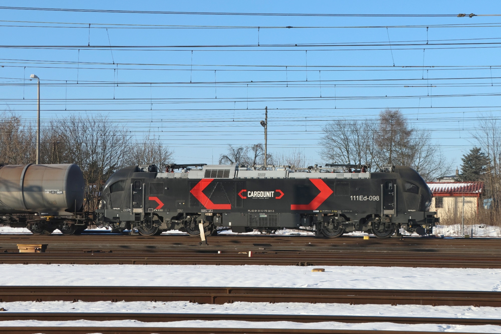 111Ed-098 manewruje ze składem beczek, przy użyciu silnika spalinowego. (Koluszki, 2026-01-18) |