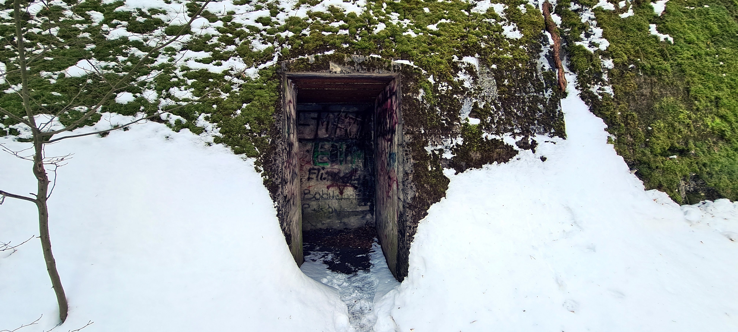 Tunel schronowy, jedno z wejść po północnej stronie. (Jeleń, 2026-01-18) |