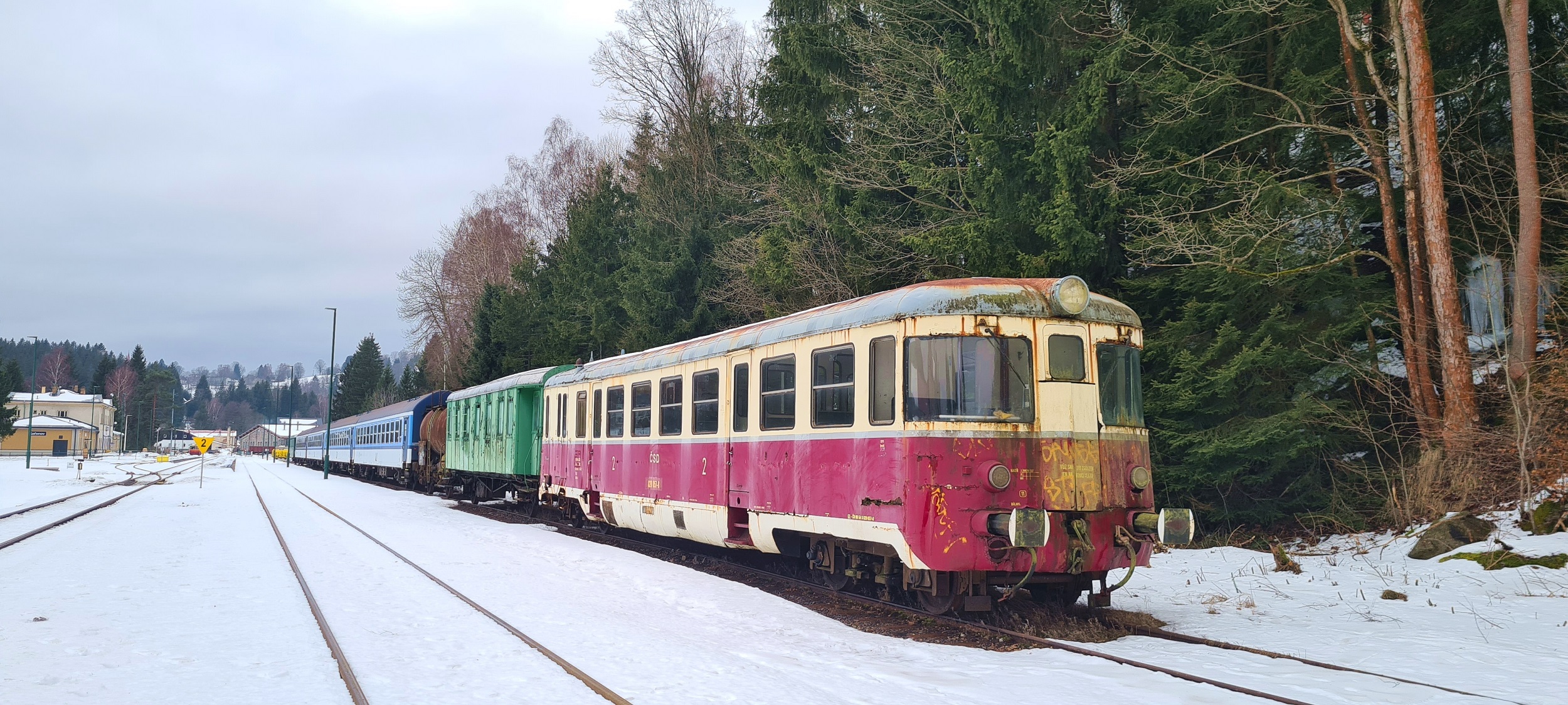 2026, 2026-02-05, Luty, Luty2026, Czechy, RepublikaCzeska, KoÅ™enov, ÄŒeskéDráhy, ÄŒD, VagonTatraStudénka, DMU, SZT, WagonMotorowy, Motorak, 820, Řada820, 820057-8, ÄŒeskoslovenskéStátnÃDráhy, ÄŒSD, Kaczka, M240.0 |