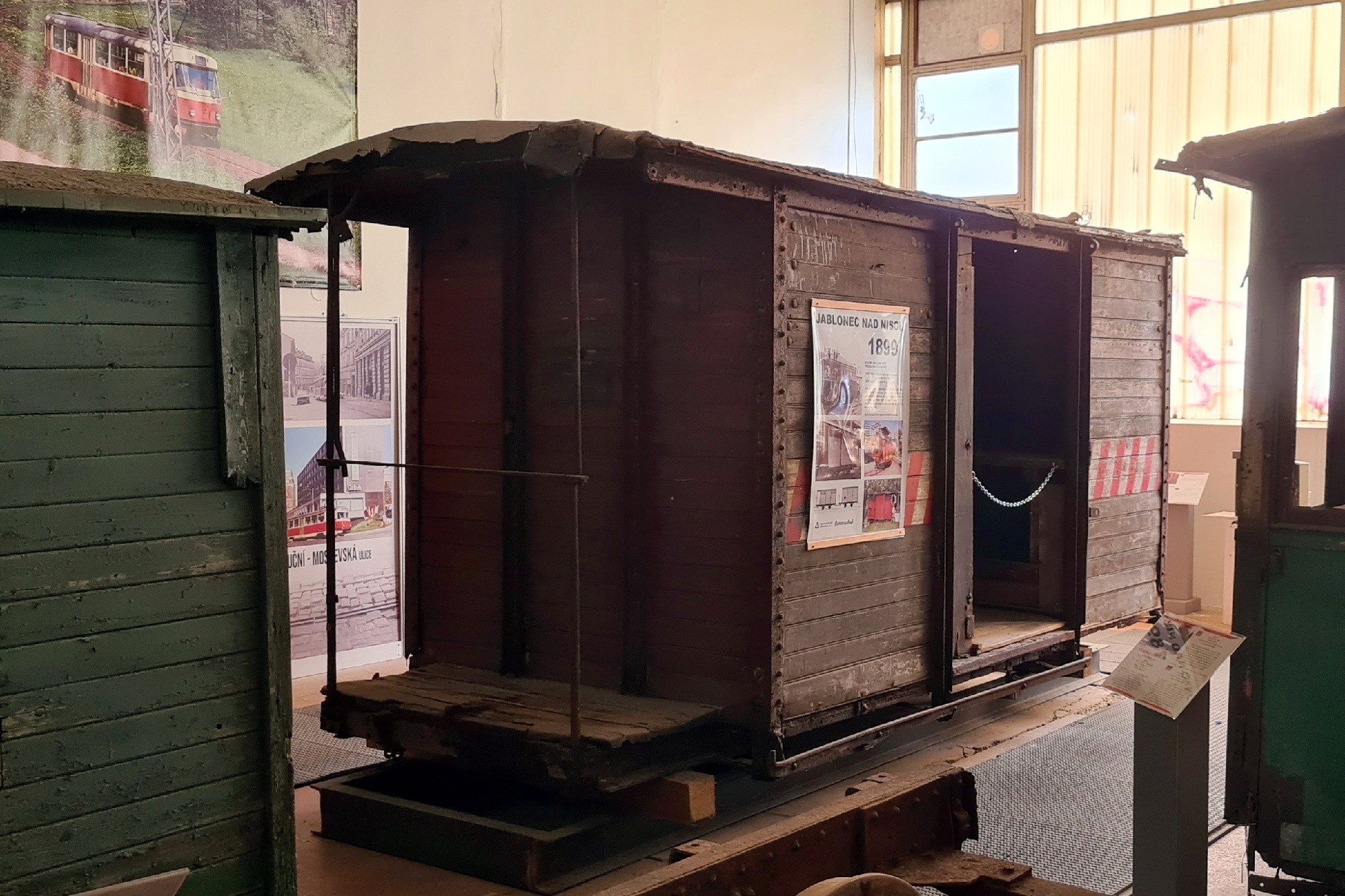 Wagon gospodarczy rodem z tramwajów jabloneckich. Prawdopodobnie pochodzi z 1899 roku. (Liberec, 2026-02-04) |
