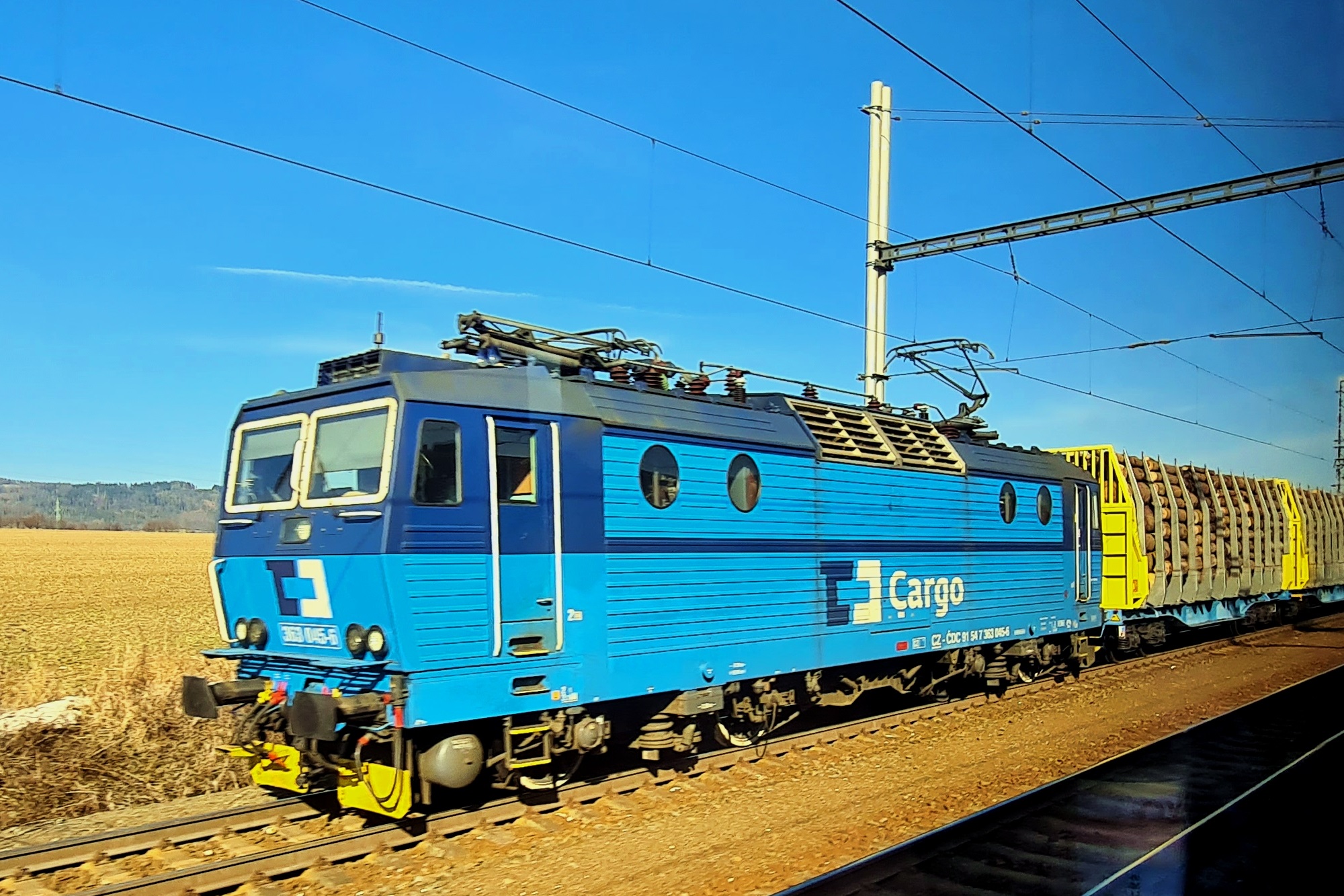 363 045-6 z wagonami z drewnem, złapana gdzieś między Boguminam a Brzecławiem. (2026-02-26) |