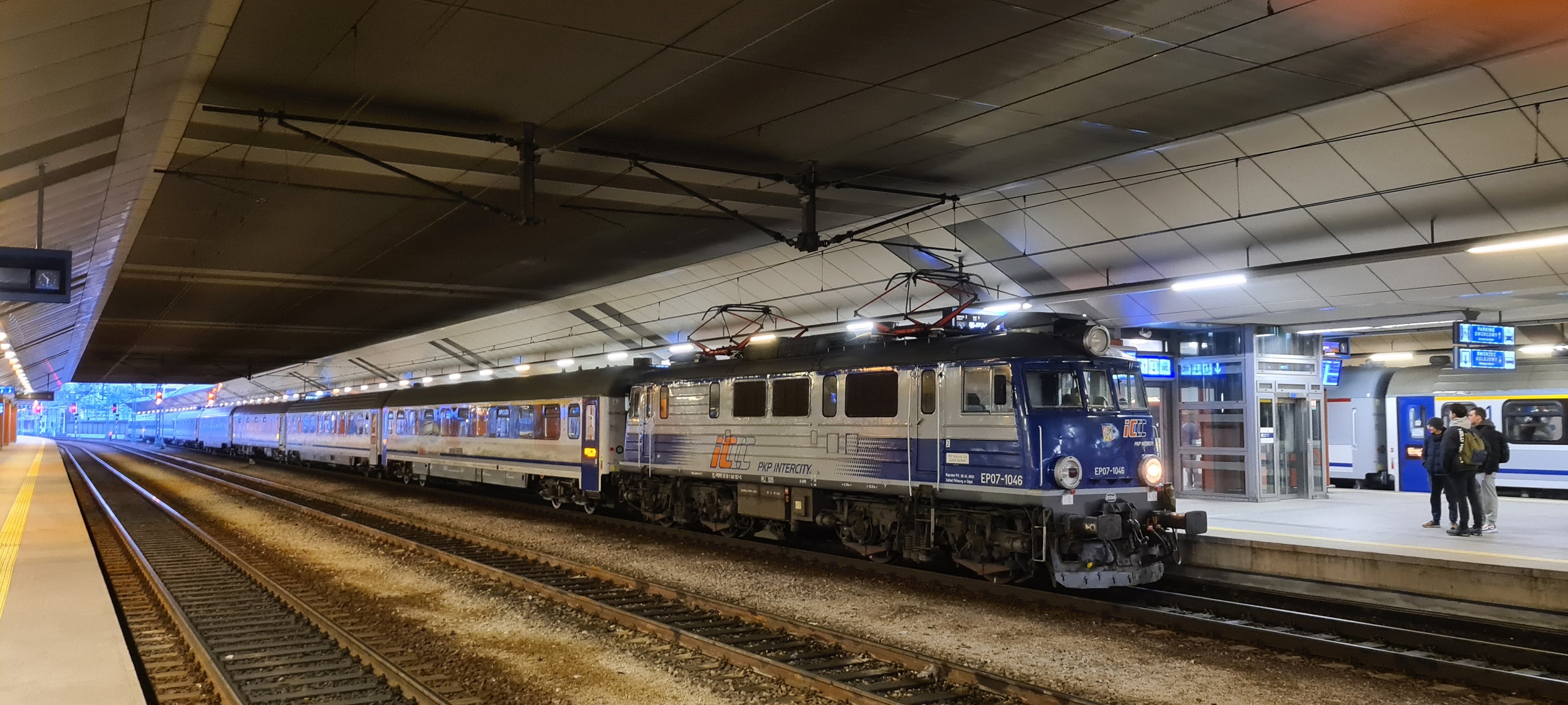 EP07-1024 na czele składu pociągu IC83172 „Podhalanin”, relacji Świnoujście - Zakopane. (Kraków Główny, 2026-03-14) |