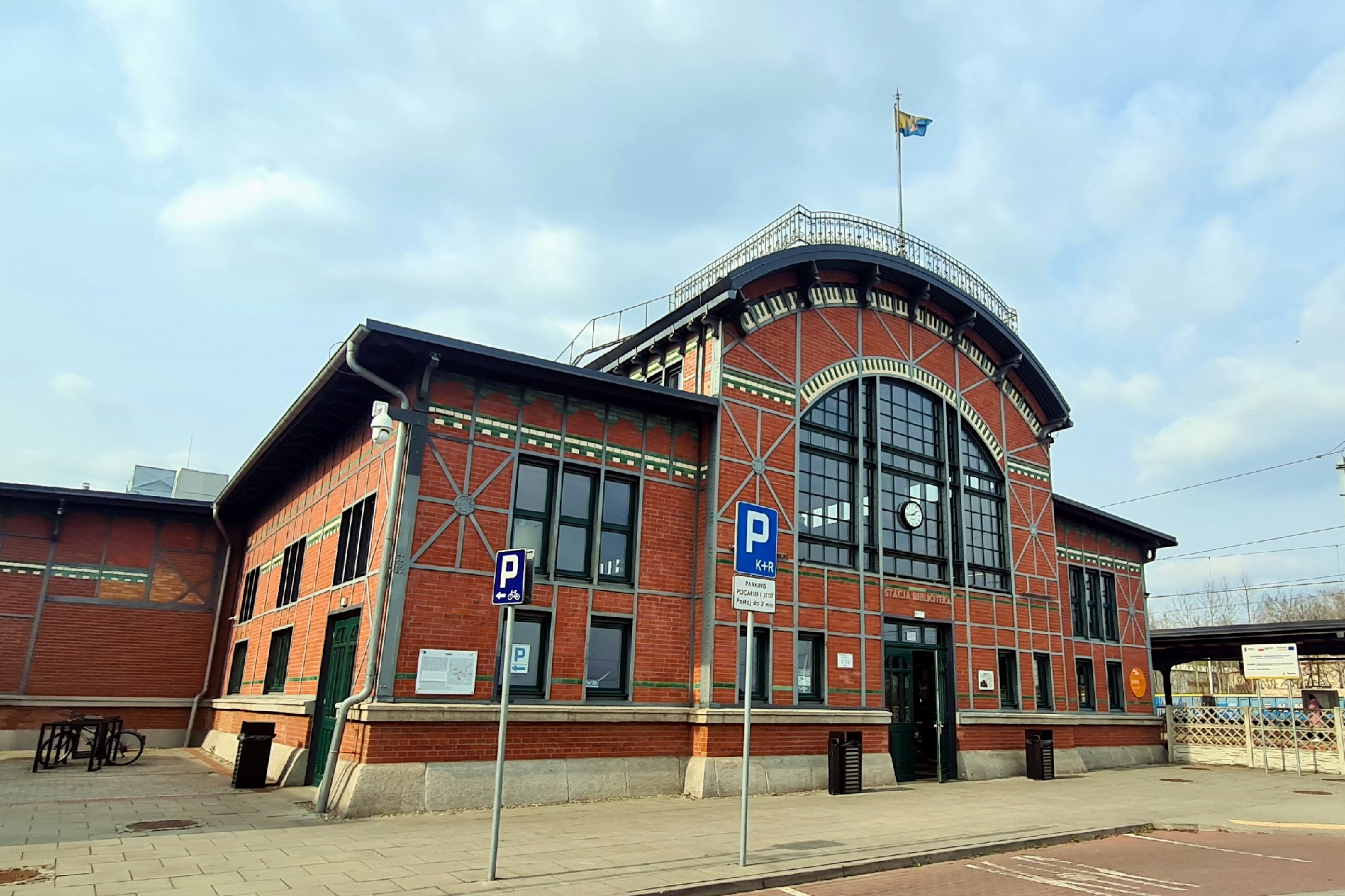 Dziewiętnastowieczny budynek dworca, od roku 2018 siedziba biblioteki miejskiej. (Ruda Chebzie, 2026-03-24) |