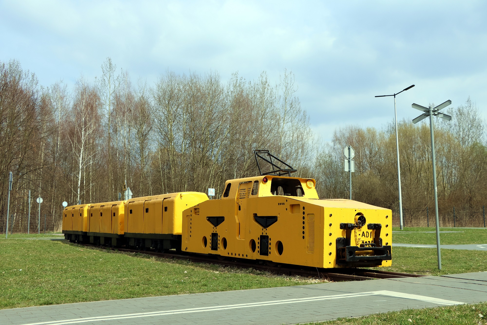 Lokomotywa dołowa Ld31 ze składem wozów kopalnianych do transportu pracowników, ustawiona na terenie miasteczka ruchu drogowego, Przy ulicy Kolberga. (Ruda Śląska, 2026-03-24) |