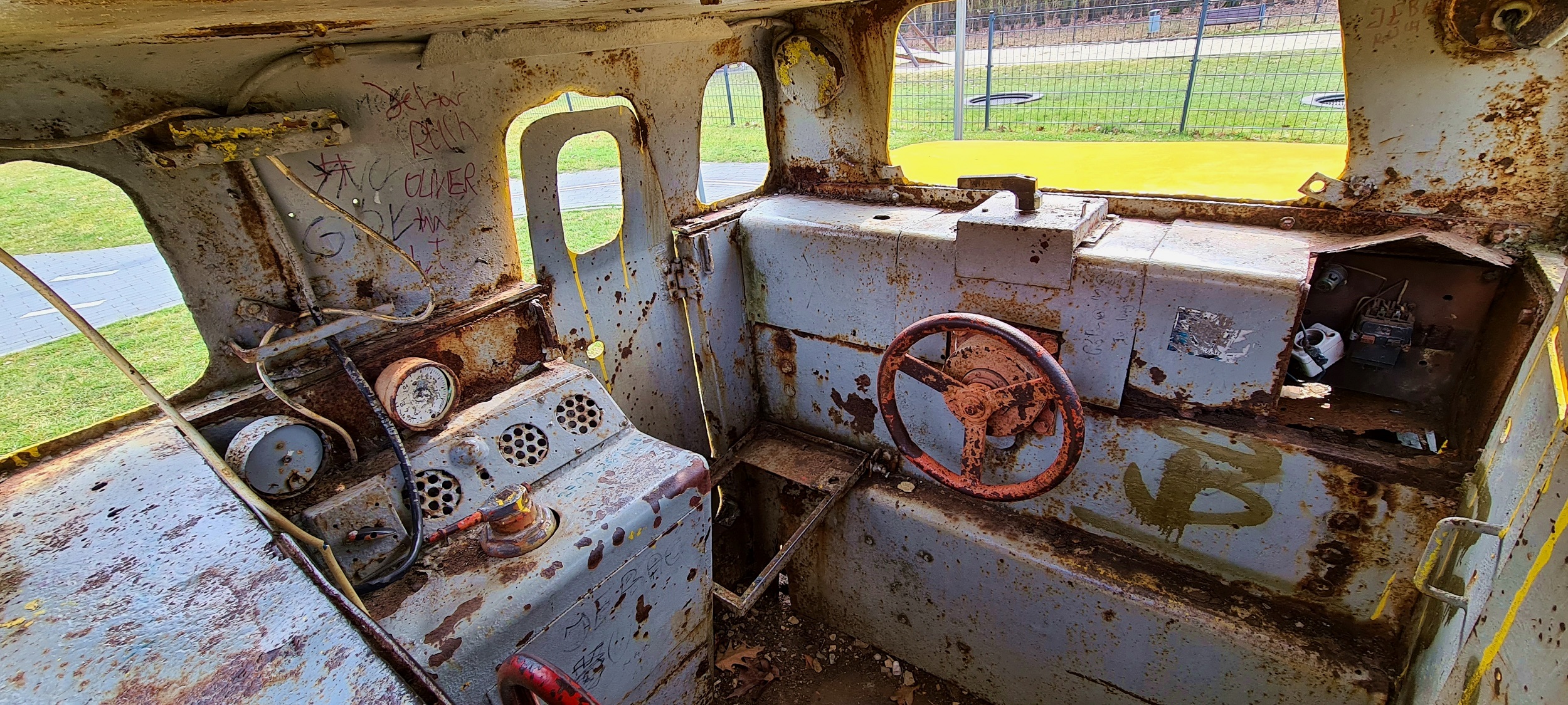 Lokomotywa dołowa Ld31 ze składem wozów kopalnianych do transportu pracowników, ustawiona na terenie miasteczka ruchu drogowego, przy ulicy Kolberga. (Ruda Śląska, 2026-03-24) |