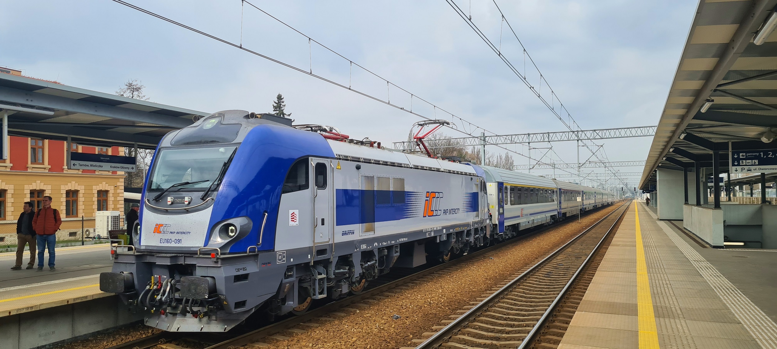 EU160-091 na czele składu pociągu IC6302 „Wyspiański”, relacji Wrocław Główny – Przemyśl Główny. (Kraków Płaszów, 2026-03-24) |