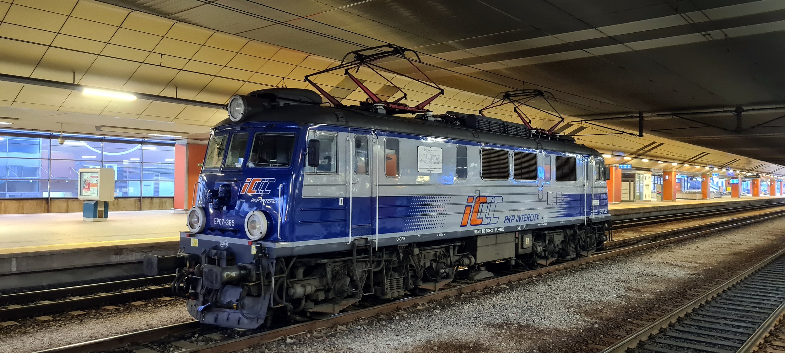 EP07-365 czeka na przyjazd pociągu IC30173 „Przemyślanin”, relacji Ustka – Przemyśl Główny. Zostanie od niego „urwana” grupa wagonów, z którą tytułowa lokomotywa odjedzie jako pociąg IC83172 „Podhalanin”, relacji Świnoujście - Zakopane. (Kraków Główny, 2026-03-16) |