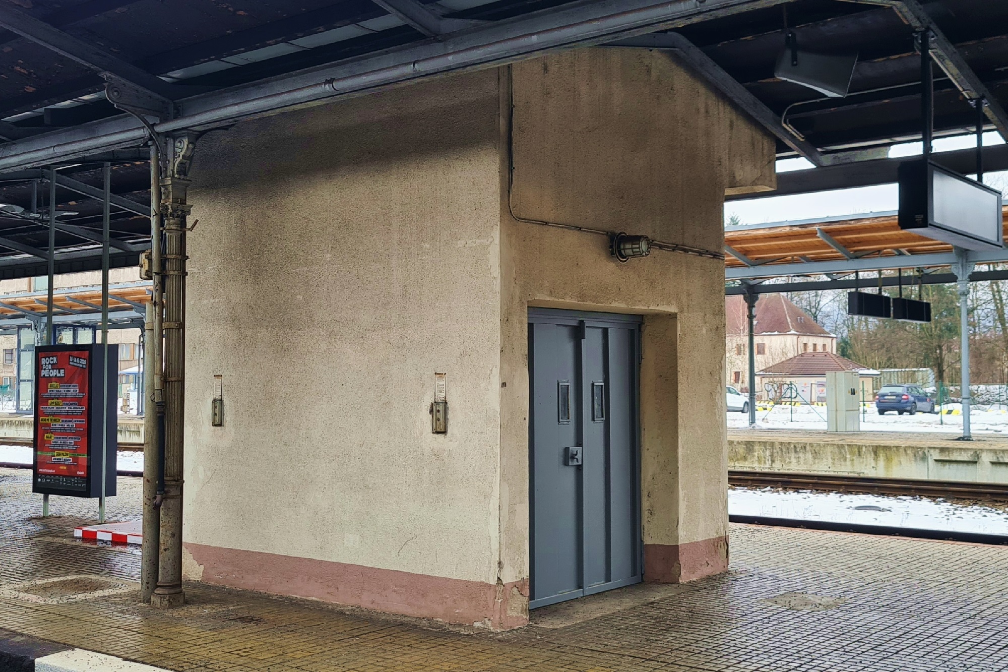 Dźwig towarowy/pocztowy na peronie 4. (Liberec, 2026-02-04) |