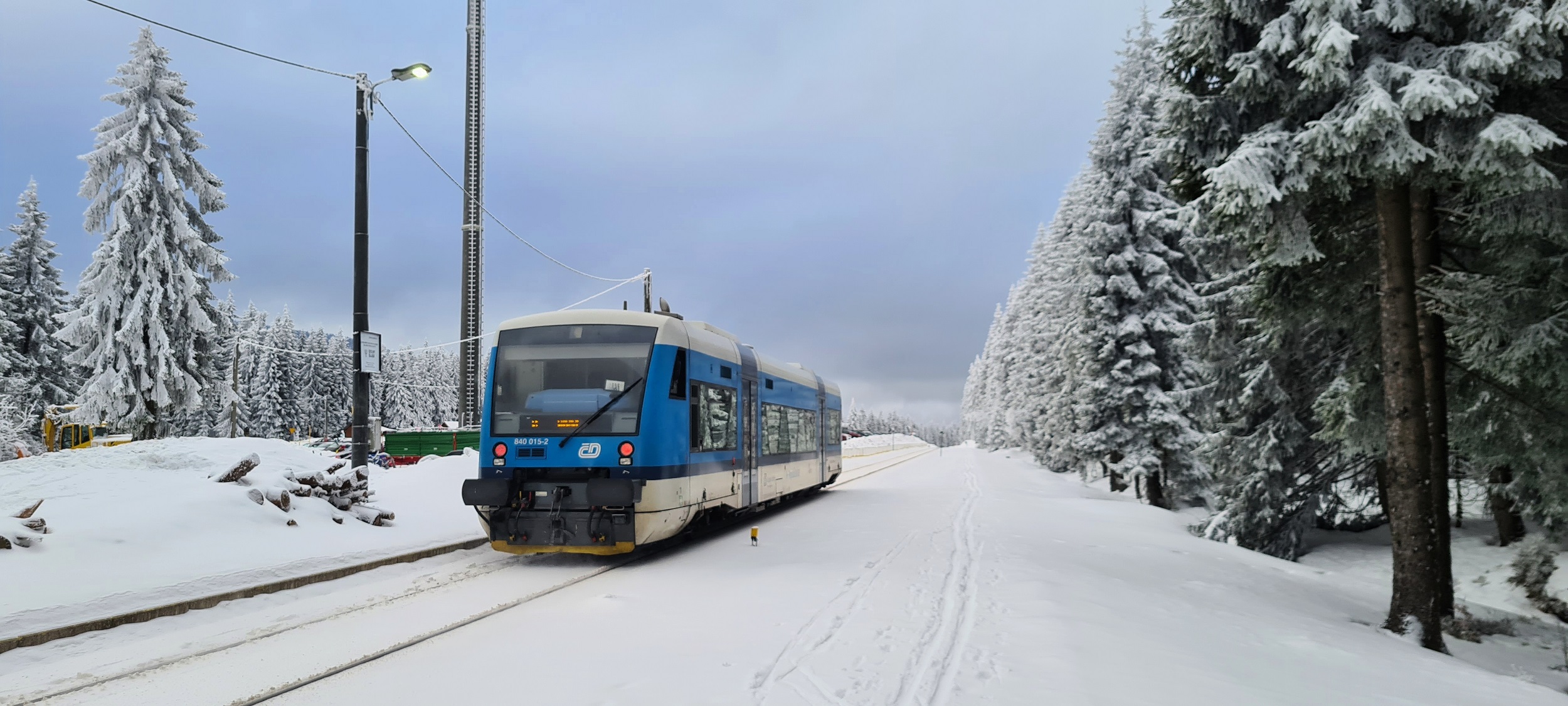 840 015-2 jako pociąg KD2663 ze Szklarskiej Poręby Górnej do Liberca. (Szklarska Poręba Jakuszyce, 2026-02-02) |