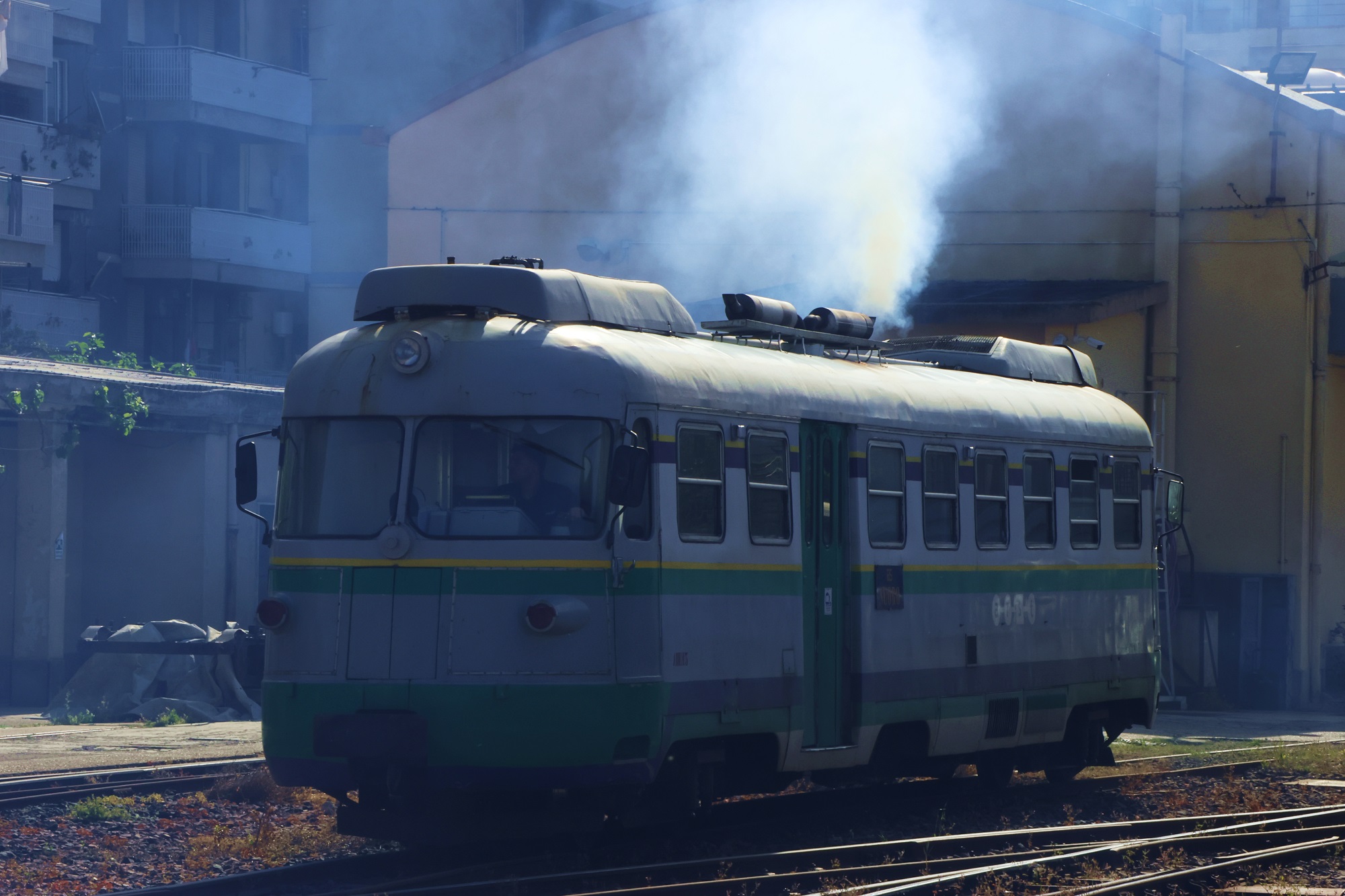 2026-04-22, 2026, Kwiecień, Kwiecień2026, Włochy, Italia, Sardynia, Sardigna, Macomer, ARST, AziendaRegionaleSardaTrasport, 950mm, Wąskotorówka, DMU, SZT, Jednostka, ZespółTrakcyjny, ADe, OfficinaMeccanicaDellaStanga, TIBB, FIAT, FIATFerroviaria, ADE13, ADE20, 95834400013-7, FdS, FerrovieDellaSardegna |